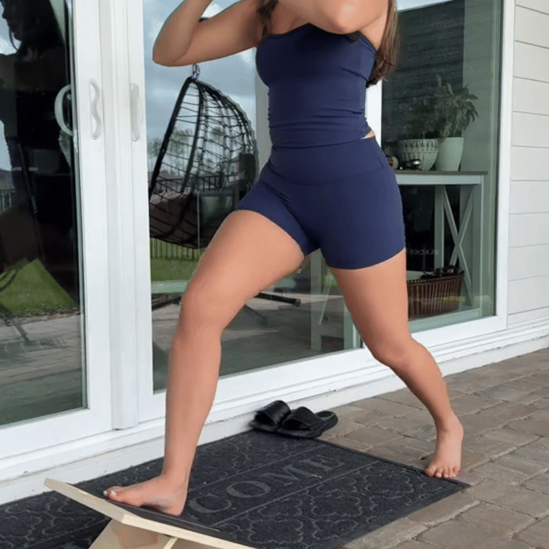 ✅ 4. Stand with both feet on the board and perform slow, controlled stretches.